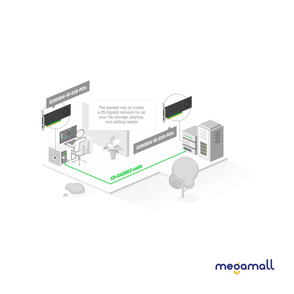 Save space in your server room by adding a real CCR2004.. within the server itself! This unique product combines a simple 2x 25 Gigabit PCIe Ethernet adapter with the impressive capabilities of a fully-fledged router.
