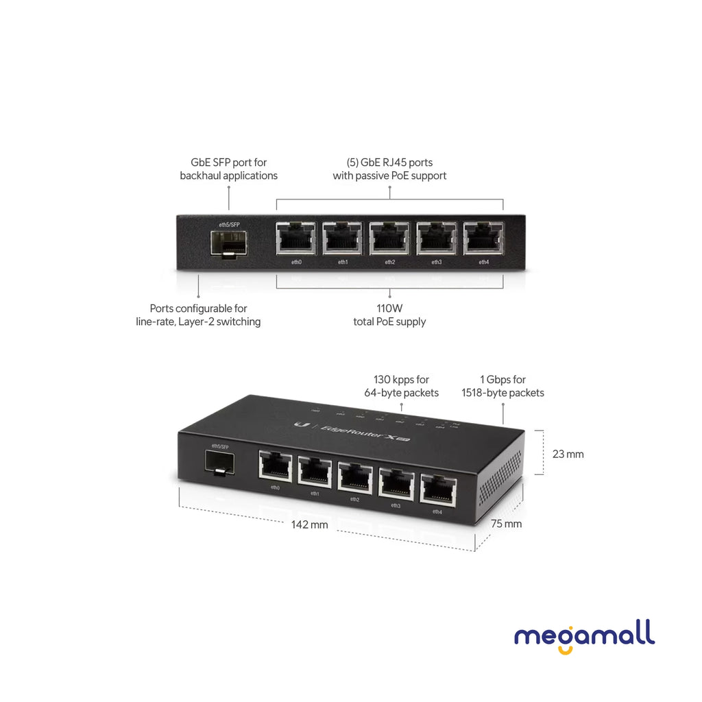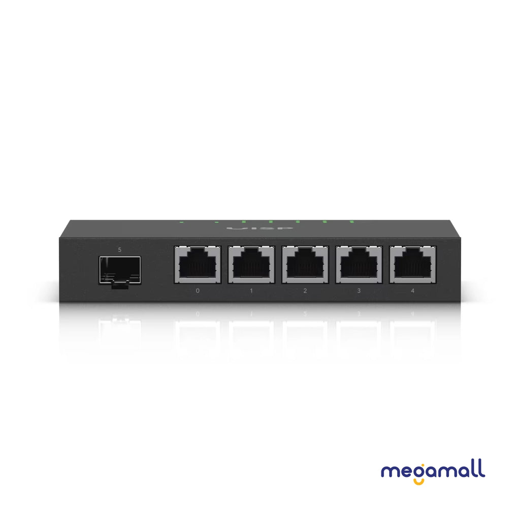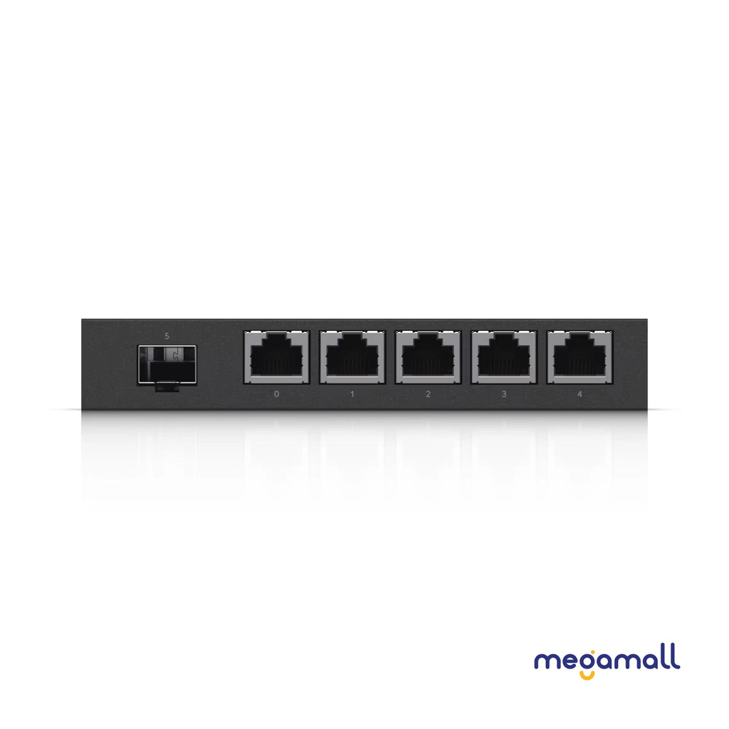 Compact but powerful router sporting (5) Gigabit RJ45 ports with passive PoE support and an SFP port.
