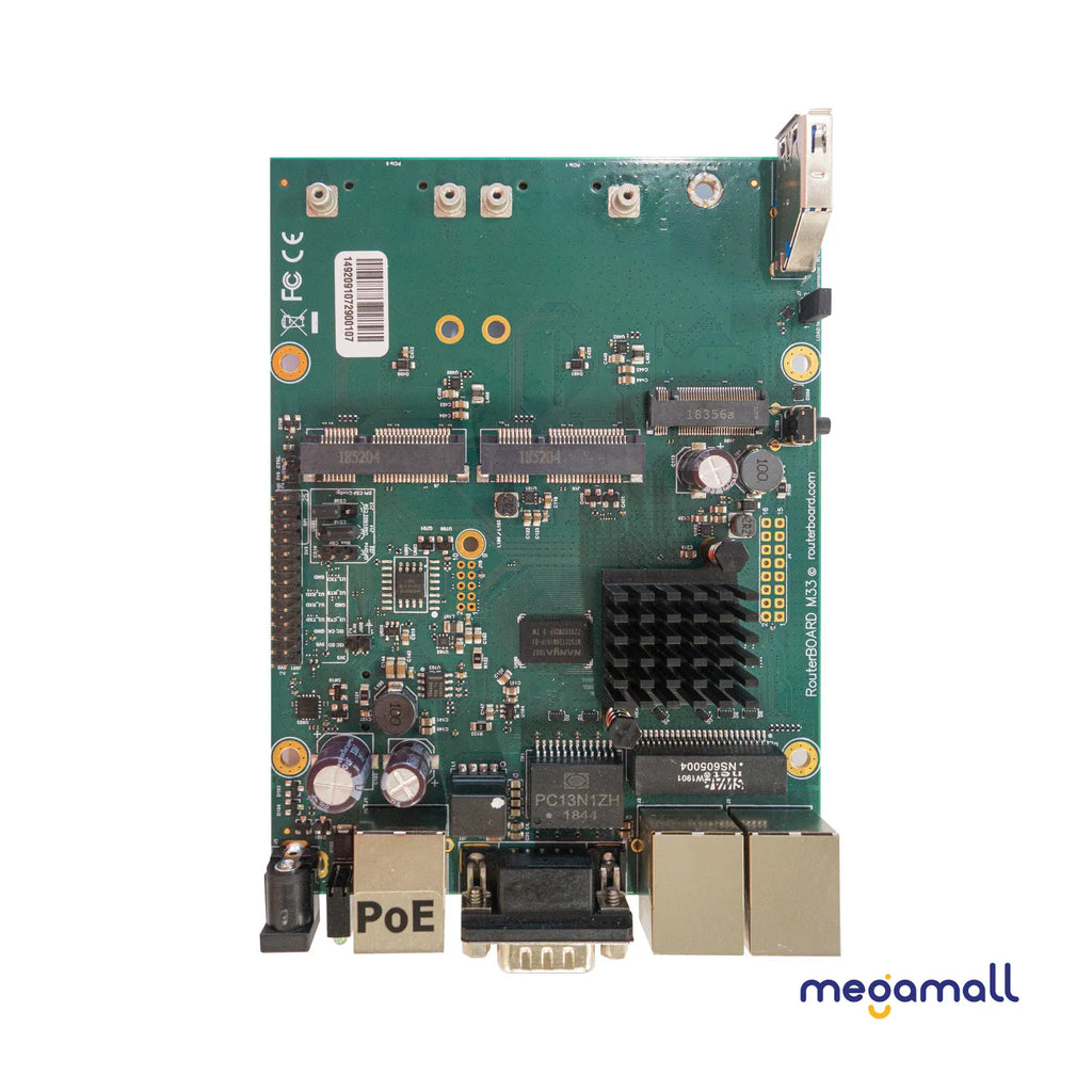 The RBM33G is a fully featured RouterBOARD device perfect for using in your own enclosure or building a custom solution. It uses the same PCB form factor and same mounting holes as it’s predecessors (RB433 and RB953 series).
