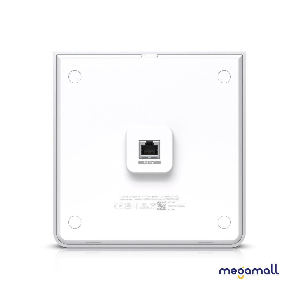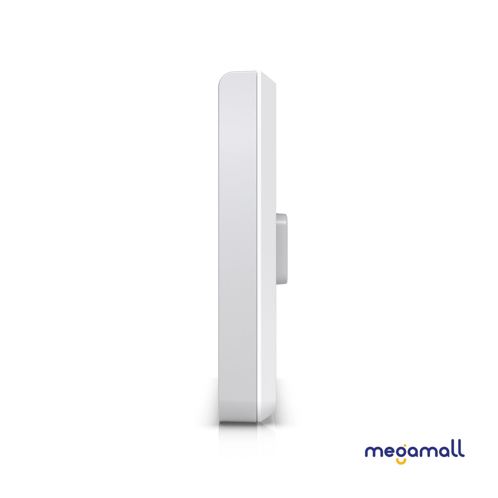 Wall-mounted WiFi 6E AP with 10 spatial streams, 6 GHz support, and a built-in 4-port switch. Designed for high-density office networks.