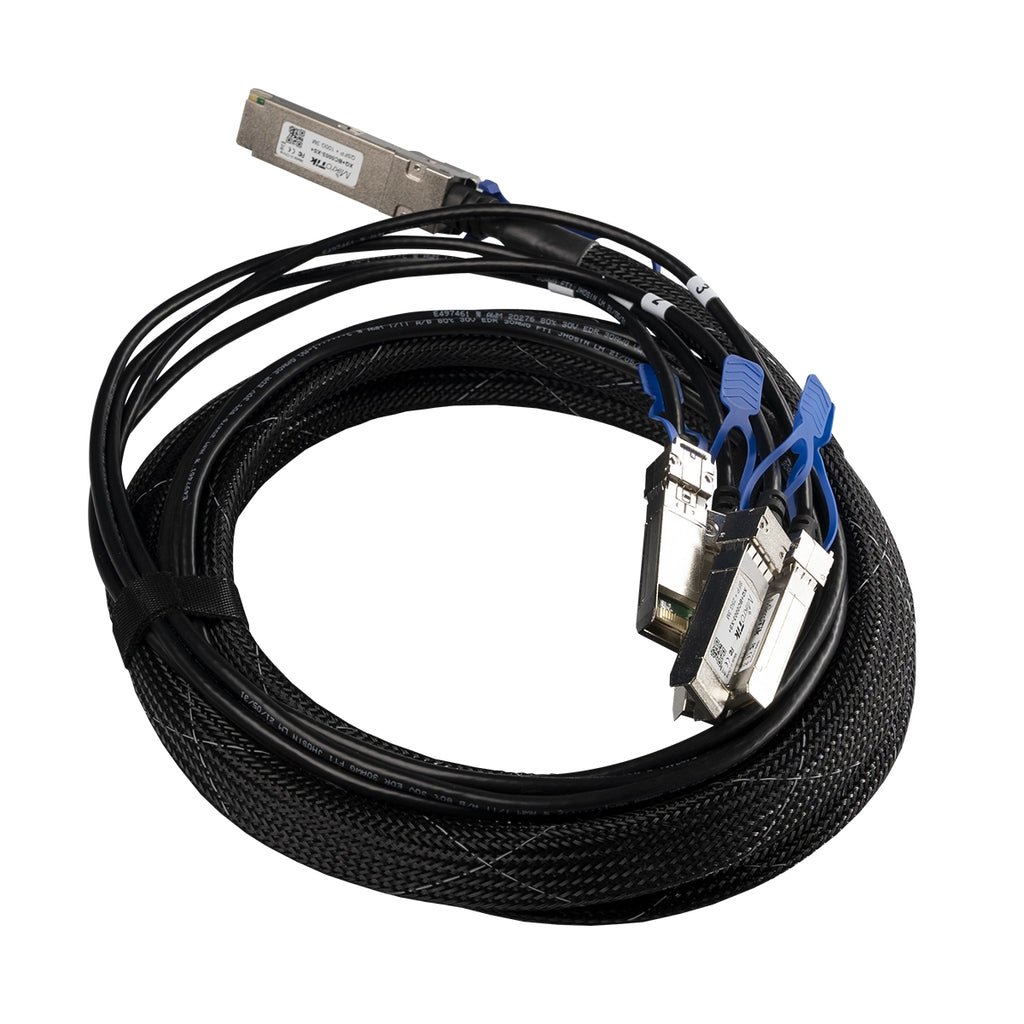 XQ+BC0003-XS+ is a QSFP28 to 4x SFP28 break-out cable. This addition to the MikroTik 100 Gigabit product line allows you to connect multiple 25 Gigabit devices to your CRS504 or CCR2216. With the integrated SFP28 modules, connecting numerous devices becomes as simple as it gets. The cable is 3 meters long – the perfect length to reach all the necessary spots while keeping your server room neat and tidy. Supports also dividing 40G line into 4 x 10G lines.