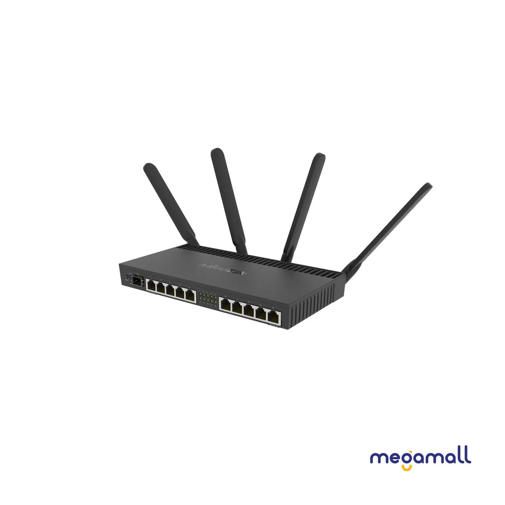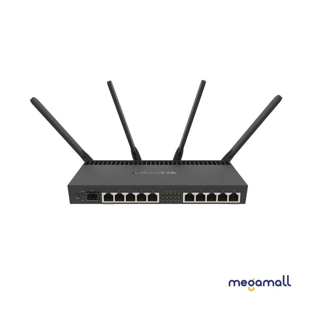 RB4011iGS+5HacQ2HnD-IN (WiFi model) is dual band, four chain unit with a supported data rate of up to 1733 Mbps in 5GHz. For legacy devices, the unit also has a dual chain 2GHz wireless card installed in miniPCI-e slot.