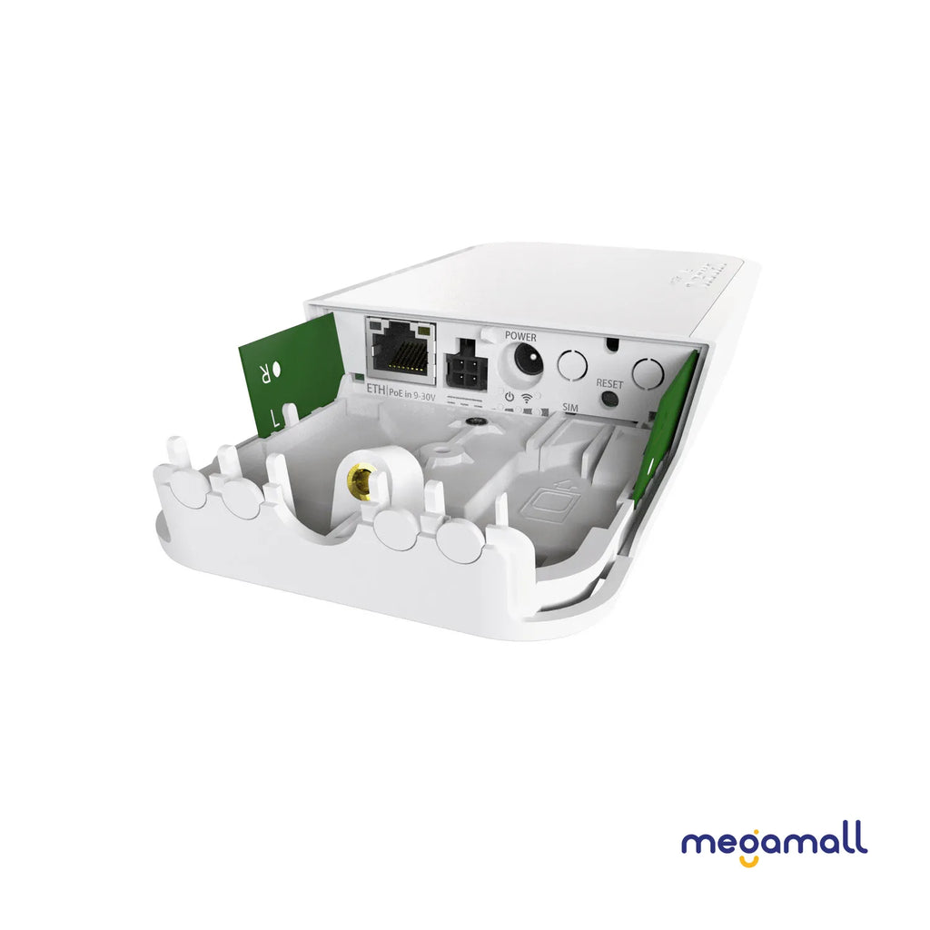 The wAP R is a small weatherproof 2.4Ghz wireless access point with a miniPCI-e slot (so you can use your own LTE card) and LTE antennas. Unit comes with one 10/100 Ethernet LAN port for your wired devices.