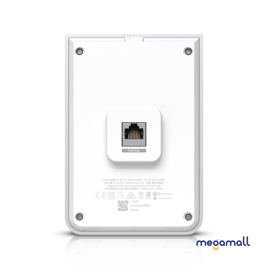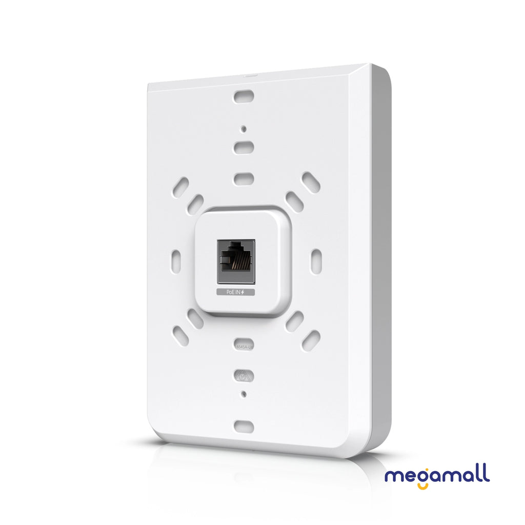 Wall-mounted WiFi 6 AP with 6 spatial streams and a built-in 4‑port switch ideal for single-room coverage in hospitality environments.
